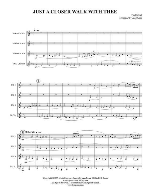 Just a closer walk for clarinet quartet