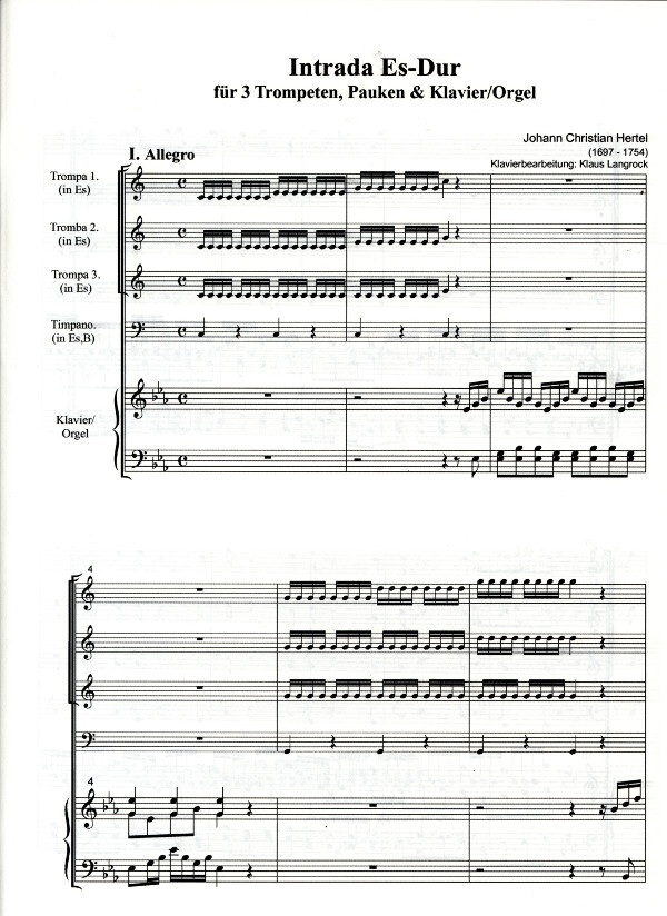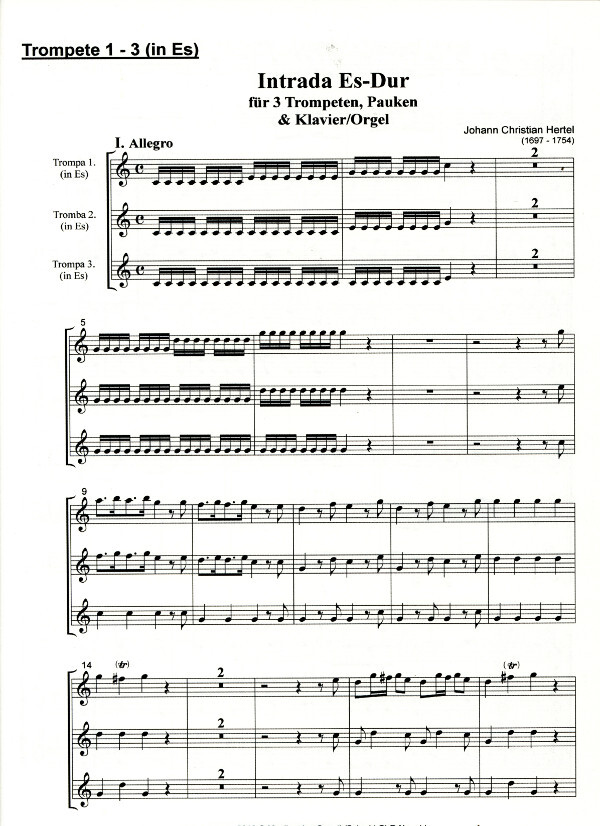 für 3 Trompeten in Es, Pauken und Klavier (Orgel)
