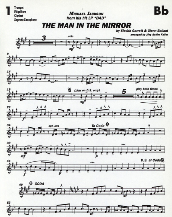 1. Stimme: Trompte/Flöte/Oboe/Violine/Blockflöte/Altsax 2.Stimme: Altsa/Trompete/Flügelhorn/Klarinette/Sopransax/Oboe/Viola/Blockflöte 3.Stimme: Horn in F/Posaune/Bariton;Cello/Fagott/Tenorsax//Tenorhorn/Altsax 4. Stimme: Tenorhorn/Tenorsax/Bariton/Posaune/Cello/Fagott