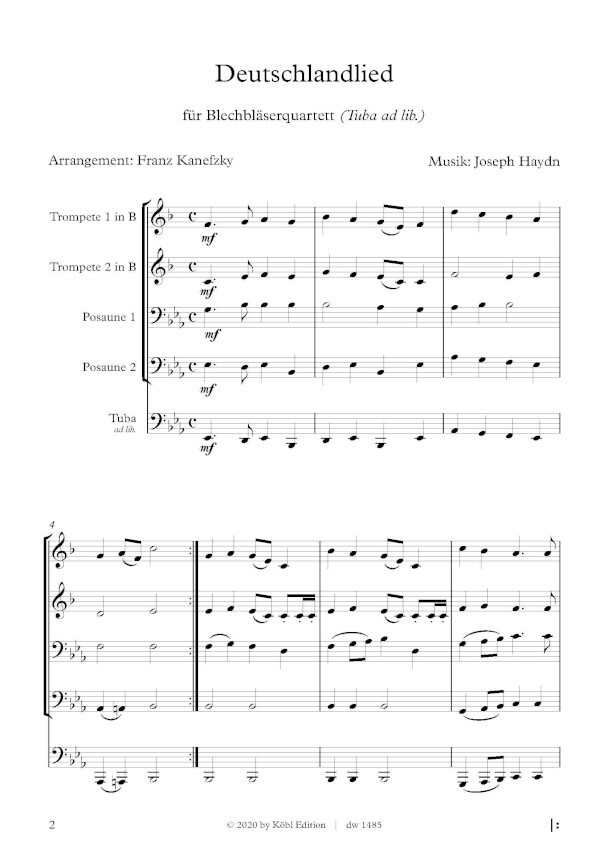 2 Trompeten Posaune (Tenorhorn / Bariton / Horn in Es)., Posaune und Tuba ad libitum