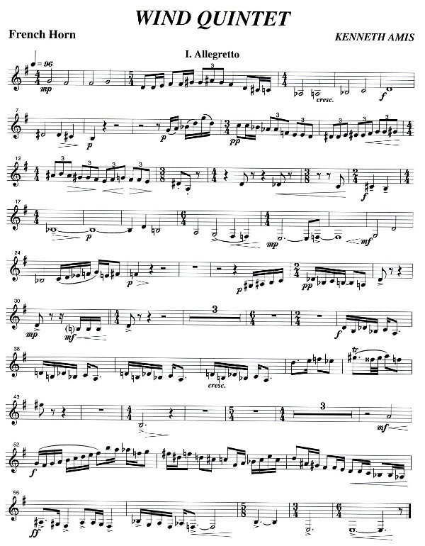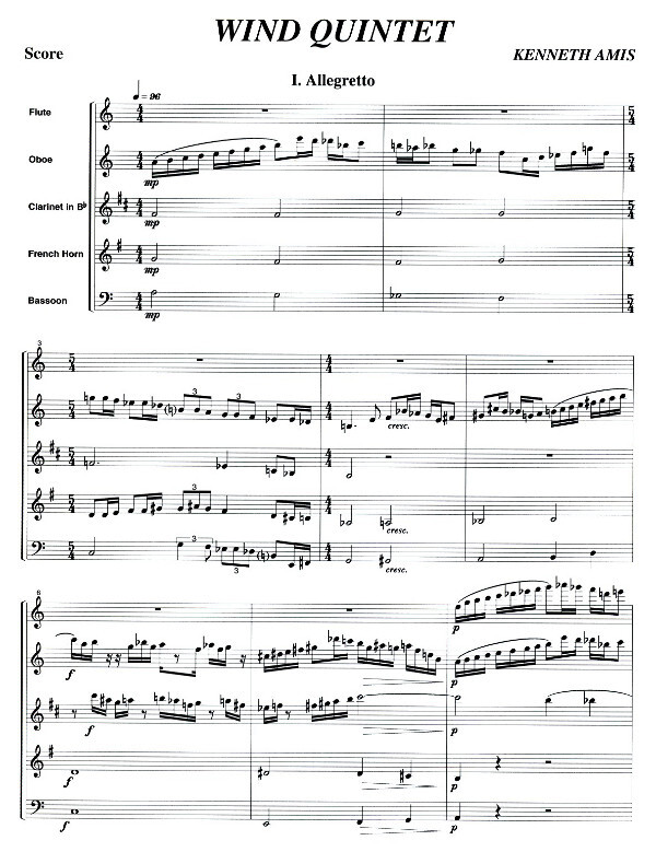 (1990, in 5 Sätzen: Allegr etto - Largo - Scherzo - Andante - Rondo) für Flöte, Oboe, Klarinette in B, Horn in F und Fagott