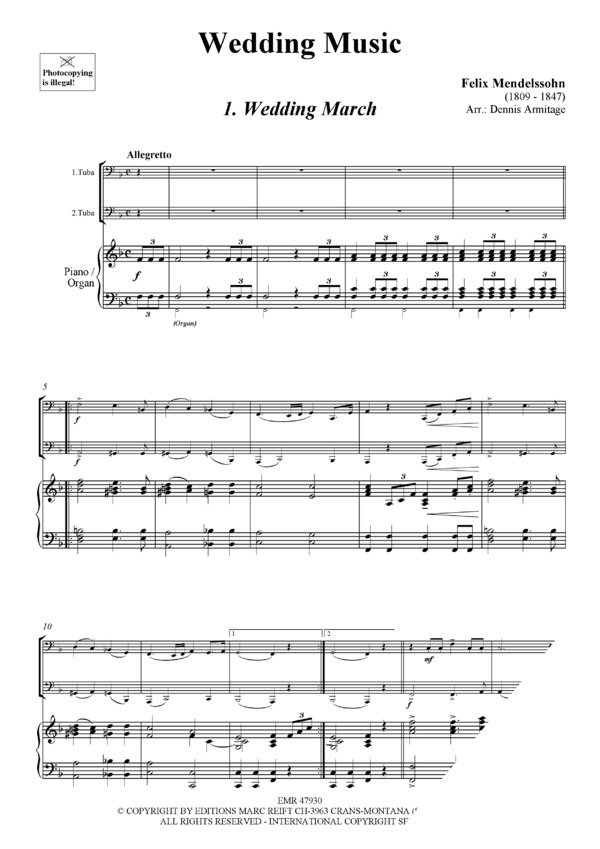 Wedding March (Mendelssohn) / Trumpet Voluntary (Clarke) / Aria (Bach) / Trumpet Tune (Purcell) / Bridal Chorus (Wagner)