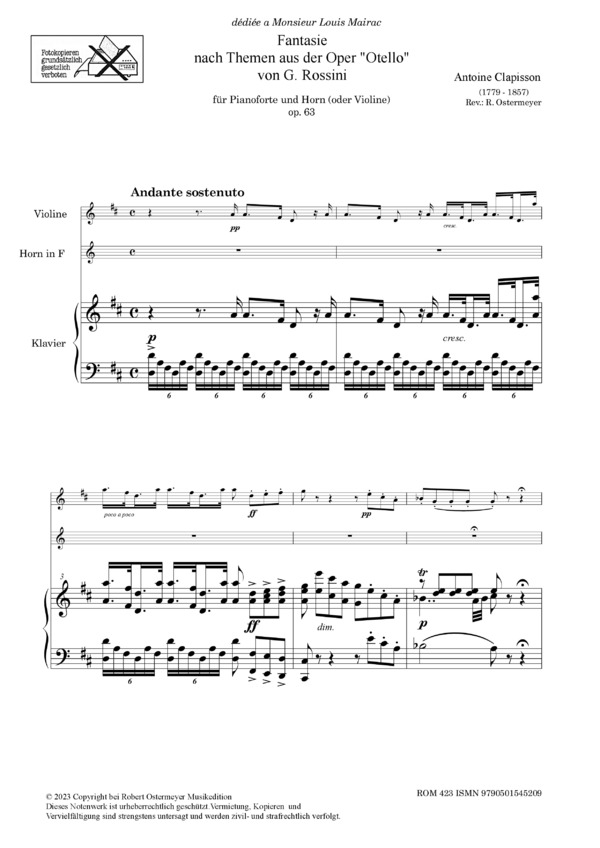 Fantasie op.63 für Horn (oder Violine) und Klavier nach Themen aus der Oper "Otello" von G. Rossini