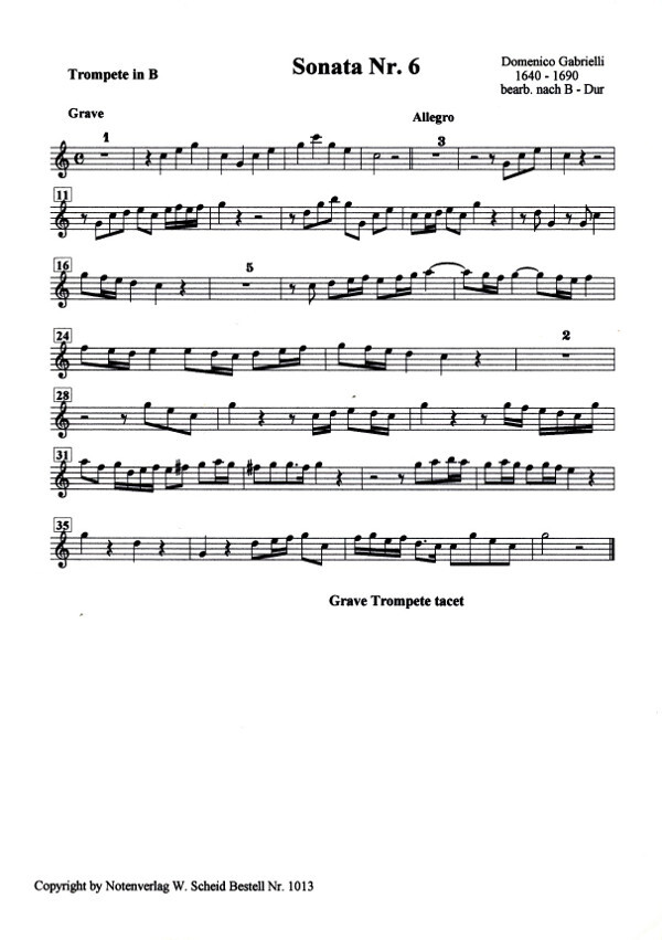 6 Sonaten D-Dur - Nr. 6 (transponiert nach B-Dur)