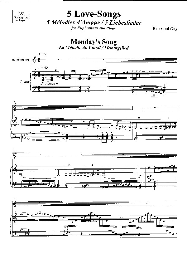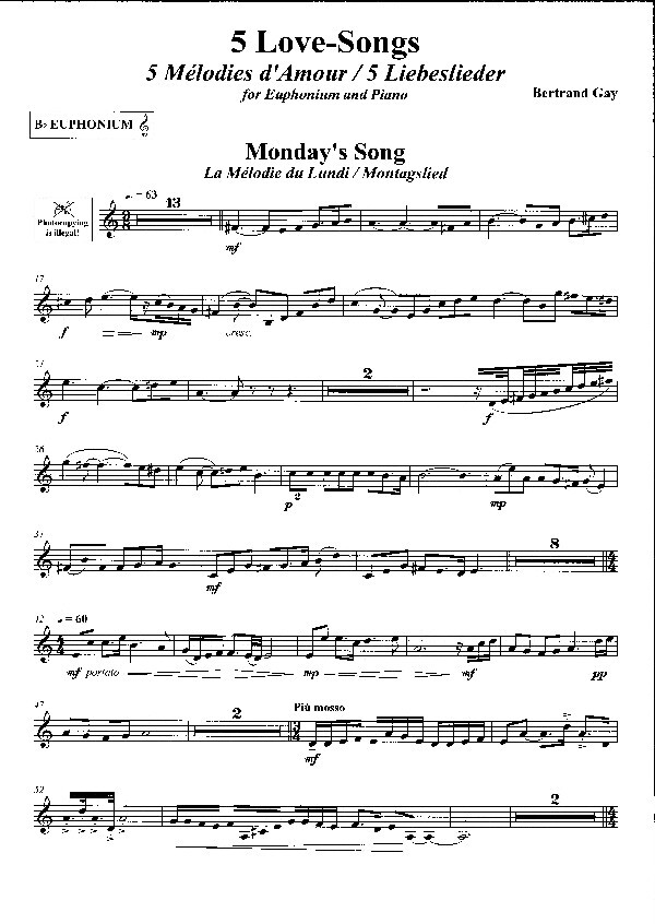 5 Liebeslieder$ (Inhaltr: Monday's Song - Tuesday's Song - Wednesday's Song - Thursday's Song -Friday' s Song) für Tenorhorn in B (Violinschlüssel) und Klavier