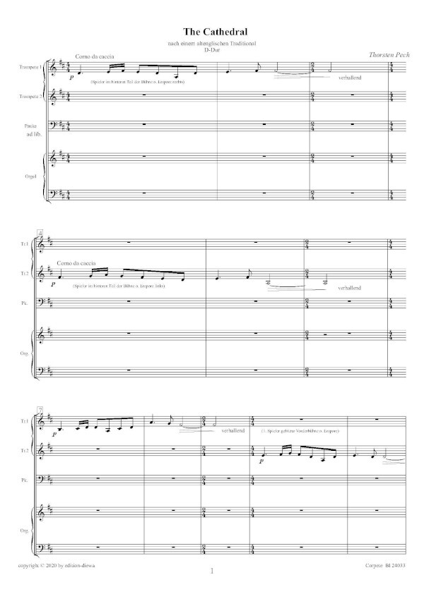 für 2 Trompeten oder 2 Corni da caccia, Pauken ad lib. und Orgel